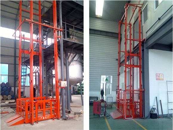导轨式升降平台是一种垂直升降作业的简易升降货梯。此设备采用液压油缸顶升、链条及钢丝绳拉动工作台,起升到目标高度后,通过限位开关自动与楼层平层。此设备适用于工业厂房、餐厅、酒楼、立体车库和地下车库等场所二、三层或多楼层间的货物传输。最低高度在150-300mm,尤其适合不能开挖坑的工作场所。安装设备时无须上部吊点,特别适合顶层高度不能到达机房安装要求的场合等比较难解决的狭小空间。形式多样化。设备运行平稳,操作简单可靠,具有液压,电器多种保护,货物传输经济便捷。建筑物不同楼层货物升降,快速上下,可更便捷的将大型物件运达各个楼层。产品结构坚固,承载量大,升降平稳,安装维护简单方便,是经济实用的楼层间替代电梯的理想货物输送设备。